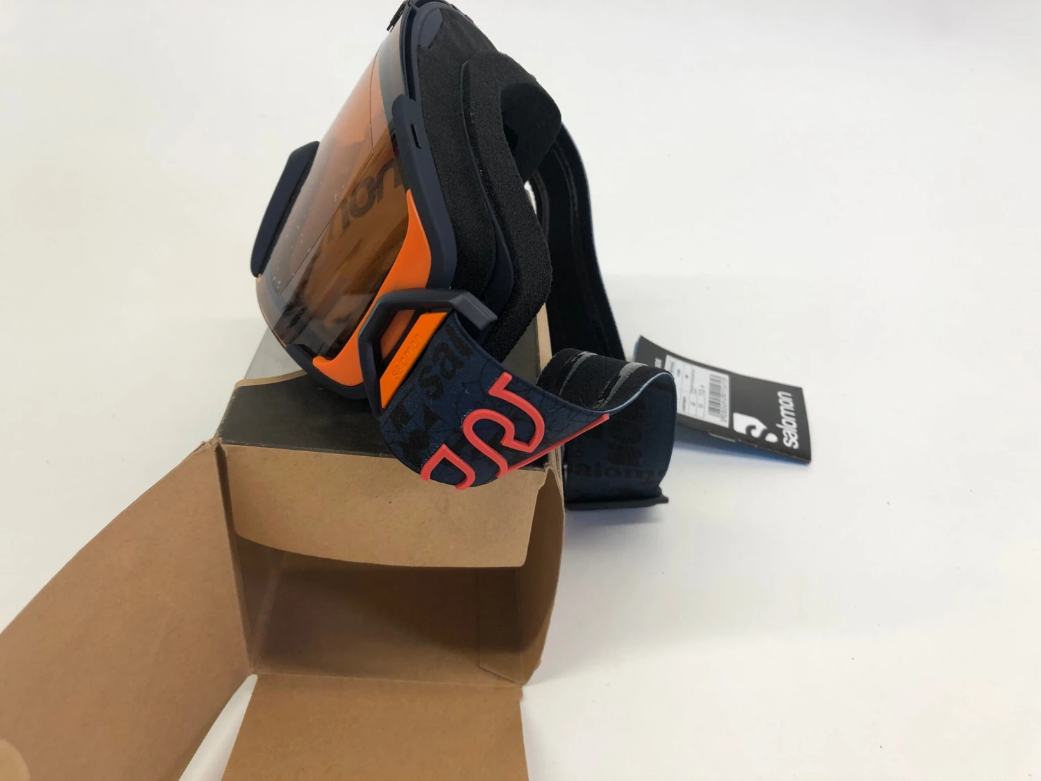 Nieuwe skibril van Salomon: de X-View oranje universele lens en oranje / blauwe accenten. Bril komt geleverd met een zakje voor je bril in op te bergen.